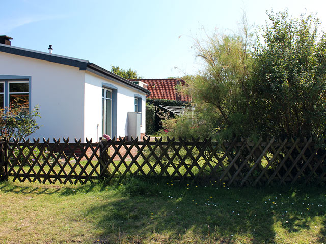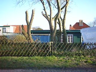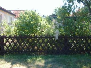 Nun ja, hinter einem Jägerzaun befinden sich Büsche und Häuser.