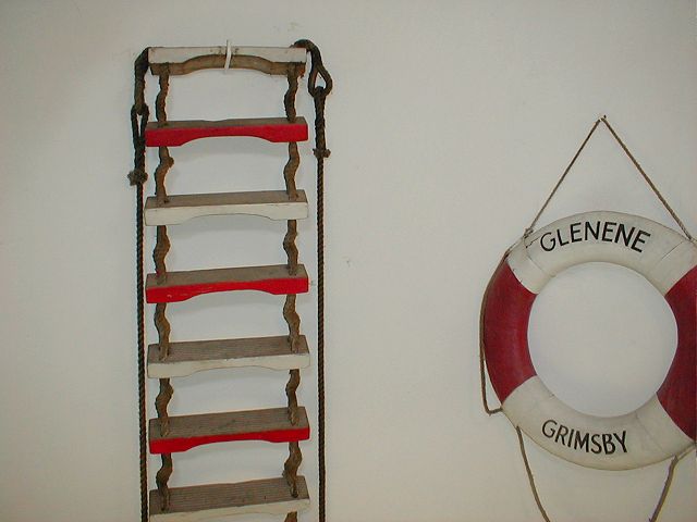 Eine Strickleiter und einen Rettungsring sehen wir hier.