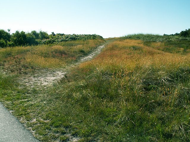 Auf den kleinen Trampelpfaden, die hier durch die Dünen laufen,