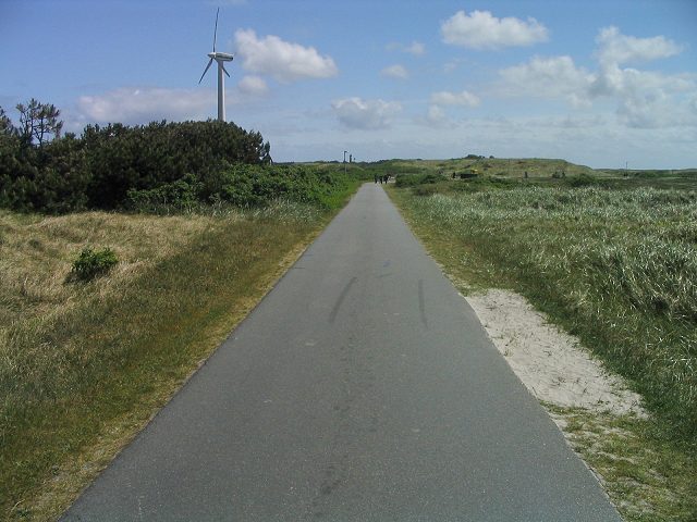 Geradeaus sehen wir nun die Windkraftanlage. Beim nächsten Standort befinden wir
