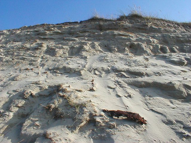Wir stehen jetzt direkt vor der Dünenabbruchkante. Rechts können Sie