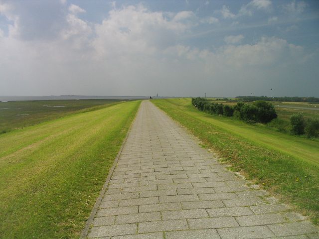 Schön frisch gemäht ist der Deich, denn eine kurze, dichte Grasnarbe ist