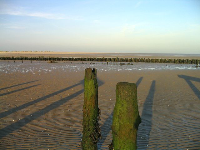 Unzählige kleine Pfähle bilden eine niedrige gerade Reihe (geradeaus).