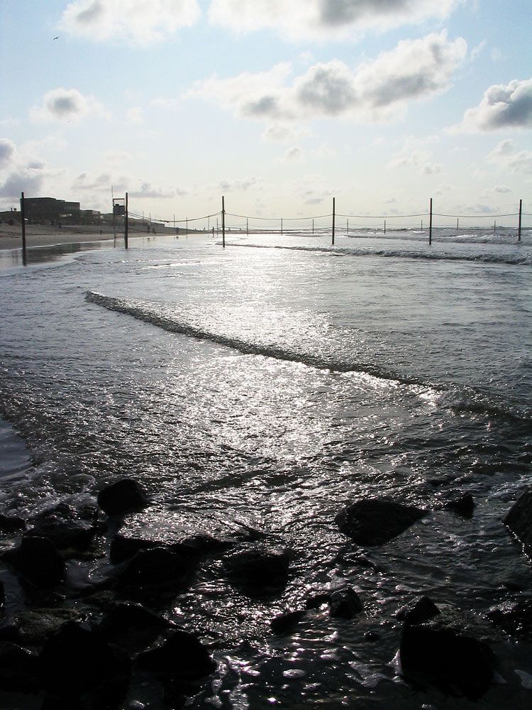 ‹ Wegen der Steine im Vordergrund (hier befindet sich die Buhne »O«) muß immer darauf geachtet werden, daß niemand außerhalb der Badefeld-Umzäunung ins Wasser geht. Aufgeschlagene Knie und abgeschürfte Beine sind sonst die zwangsläufige Folge.