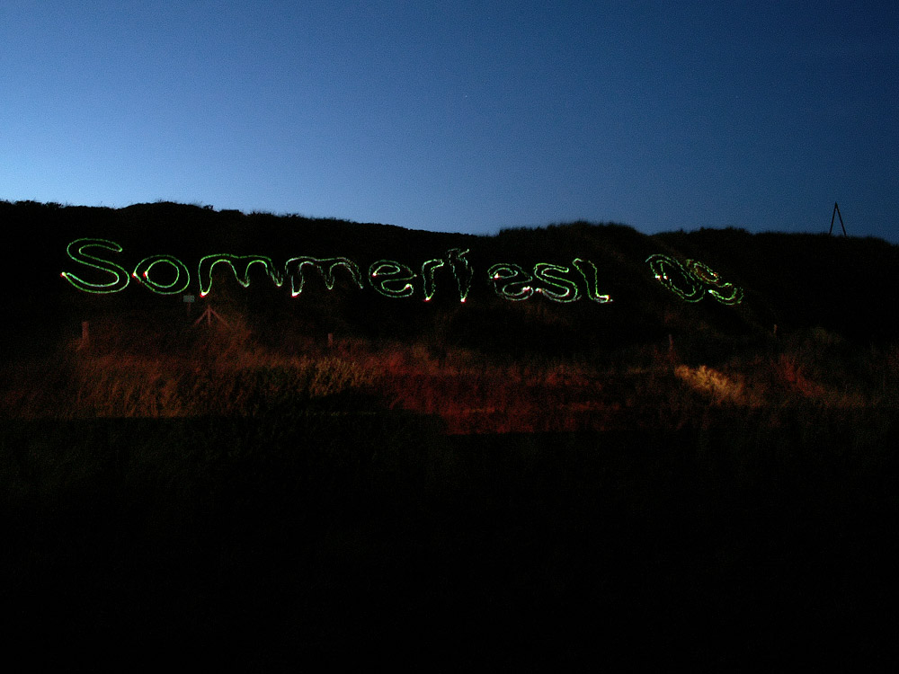 Mit Hilfe eines Lasers hat man beim Sommerfest 2009 am Bielefelder Heim sogar die Dünen als Leinwand genutzt. Auch Liedtitel, Ankündigungen und Bierwünsche für den DJ wurden gezeigt.