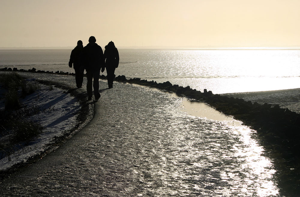 Dies ist der westlichste Punkt der Insel, wir befinden uns auf dem »Uferdeckwerk West«. Auch hier muß man beim Laufen aufpassen, da sich eine feste Eisschicht auf dem Weg gebildet hat.