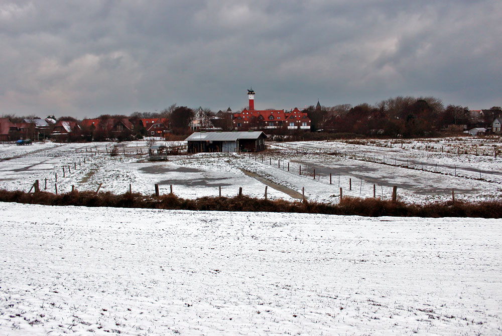 Der Winter hat auf der Insel Einzug gehalten, die Pferdeweiden im Dorfgroden sind schneebedeckt.