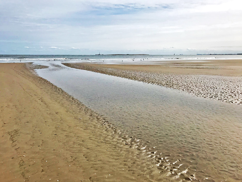 Der östlichste Priel der Insel mündet direkt in die Blaue Balje, die sich zwischen Wangerooge und Minsener Oog (im Hintergrund erkennbar) befindet.