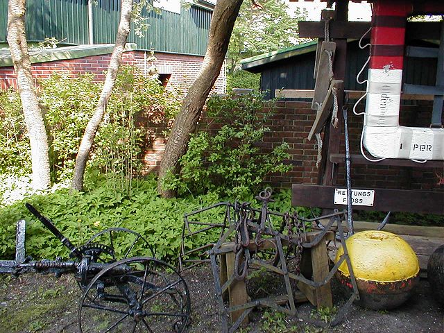 Davor befinden sich einige Gerätschaften zur Ackerbewirtung.
