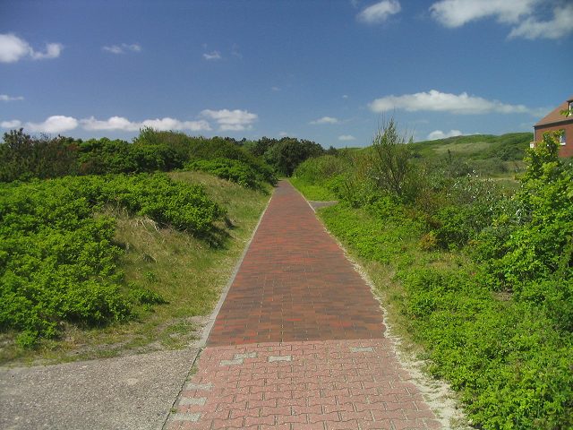 bzw. zum Strand, zur Aussichtsdüne und zum »Bielefelder Heim« (rechts).