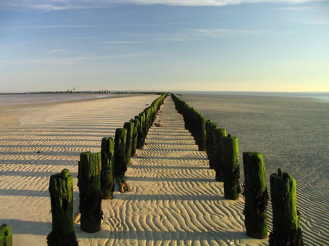 Auf diesen beiden Pfahlreihen saßen, als die Bahn noch hierher fuhr, die Schwellen.