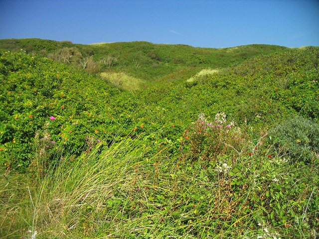 Über und über sind die Dünen hier mit Heckenrosen bewachsen.