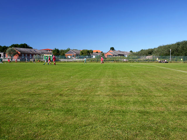 Ein Blick übers Feld, rechts sieht man die Linie des östlichen Strafraums.