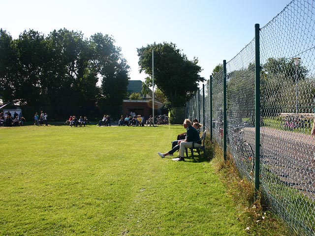 mit angeschlossenen Umkleidekabinen für die Spieler.