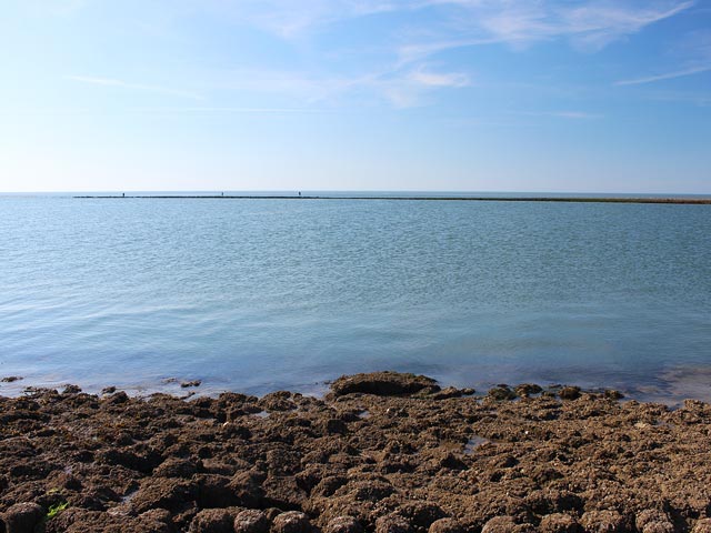 Im Hintergrund, auf der Buhne »H«, versuchen drei Angler Ihr Glück.